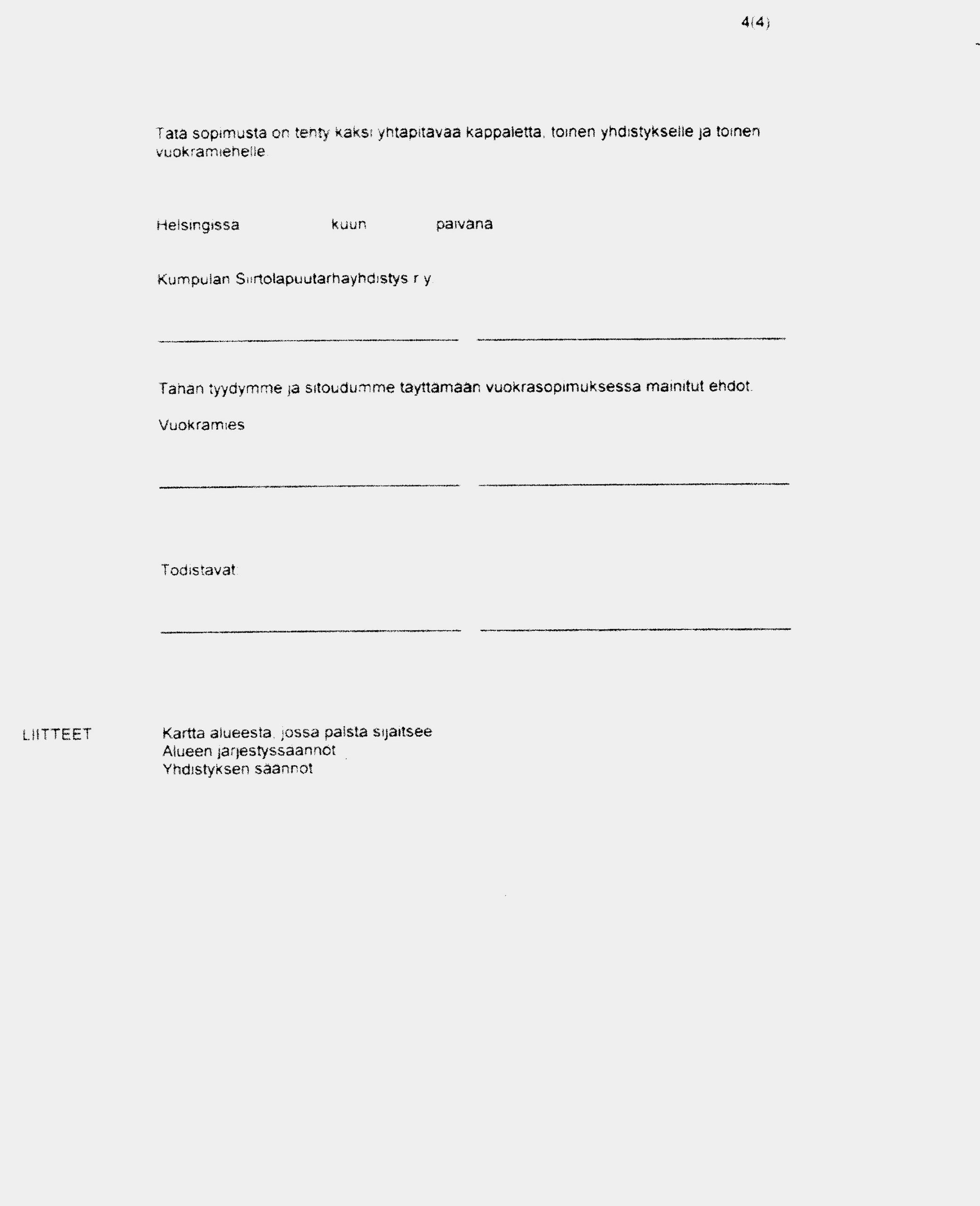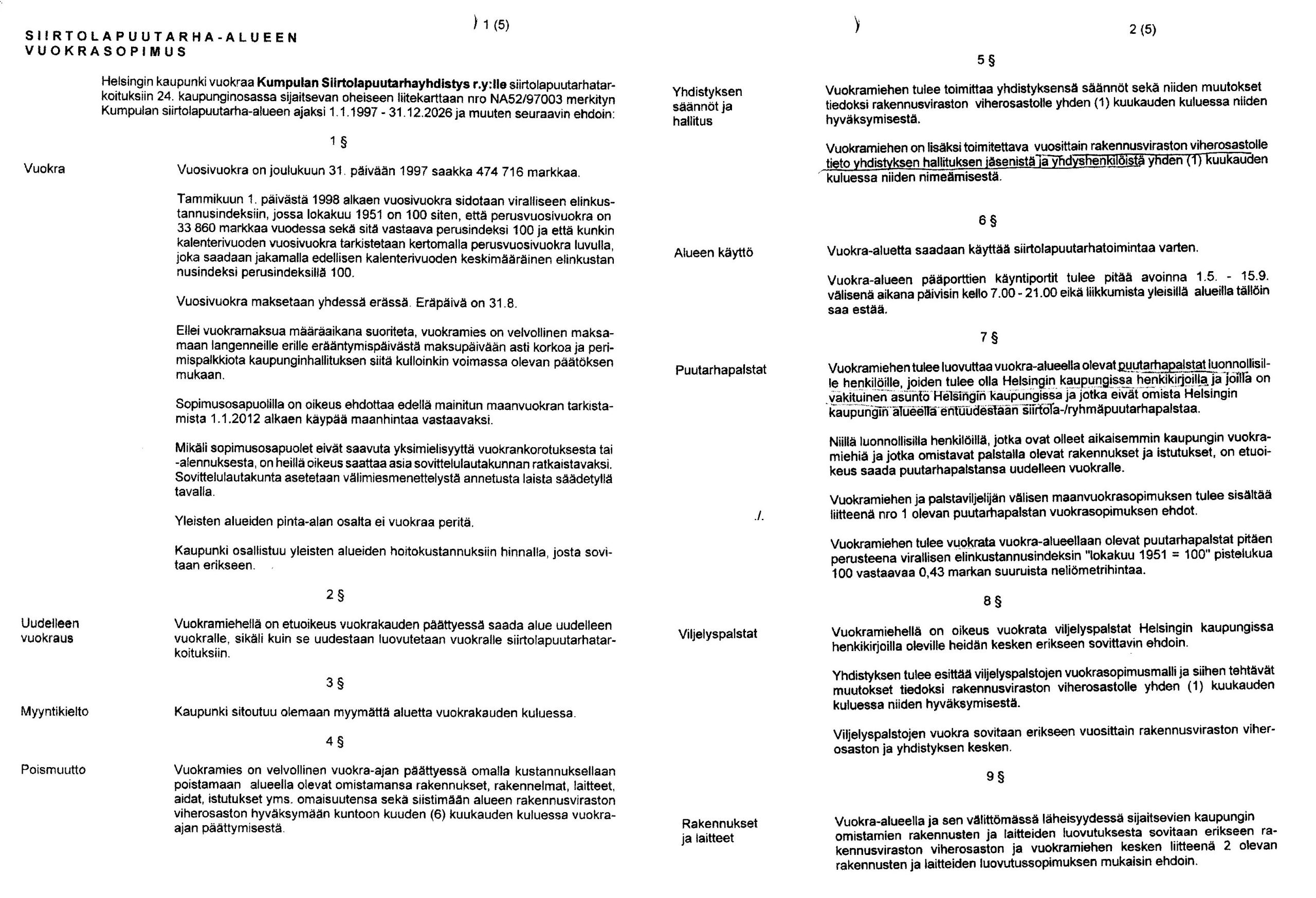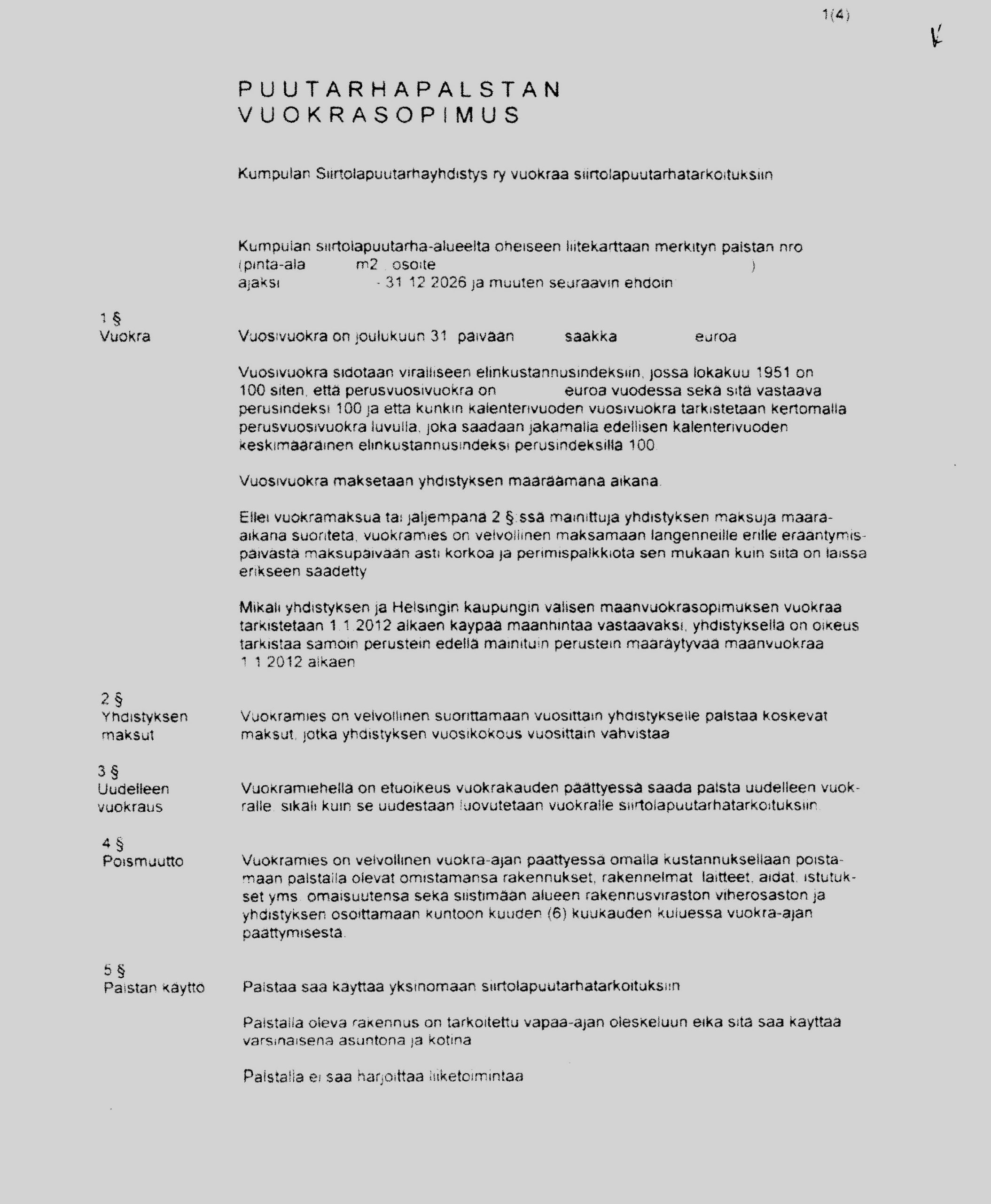 Kumpulan Siirtolapuutarhayhdistys ry:n palstanvuokrasopimus