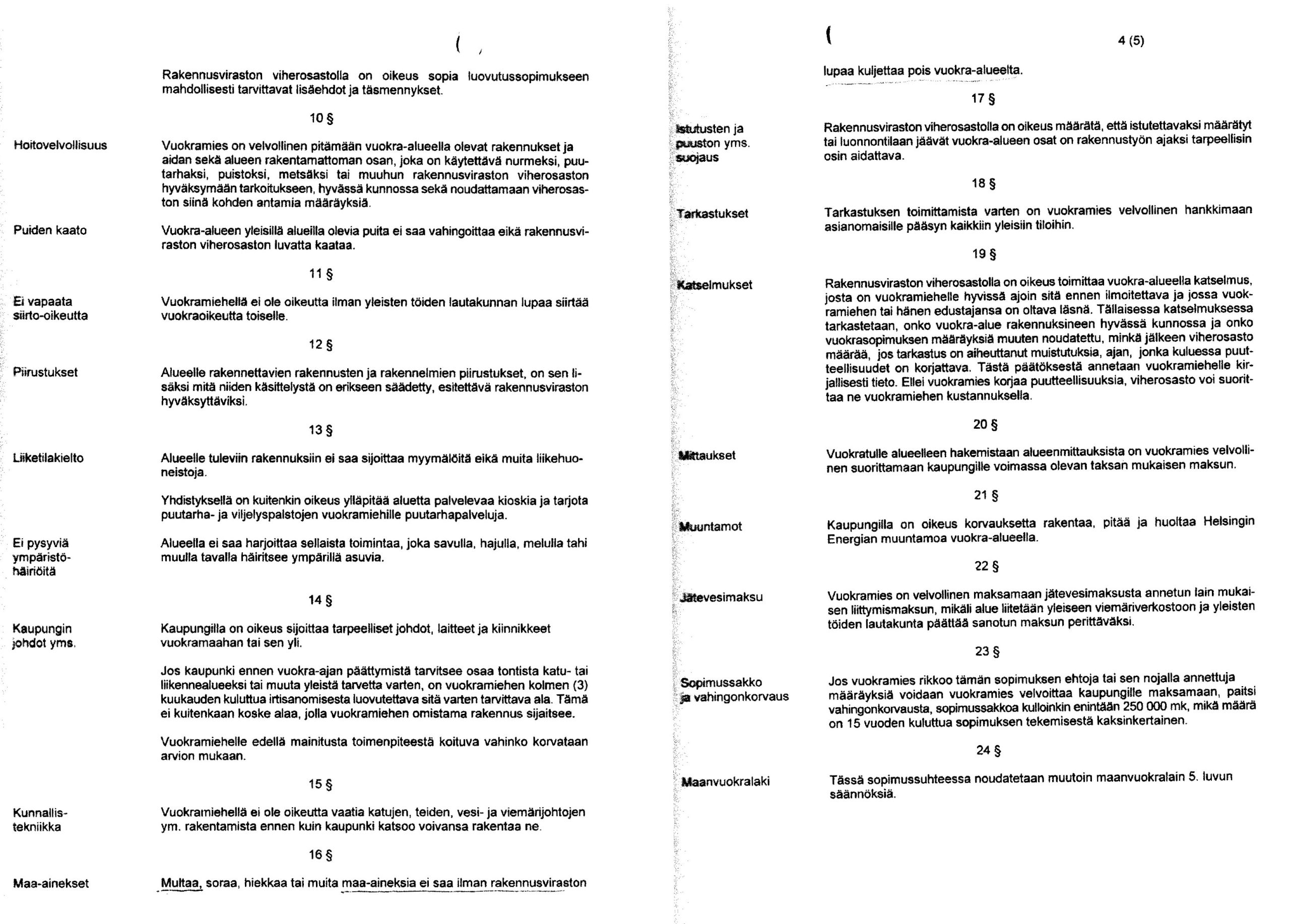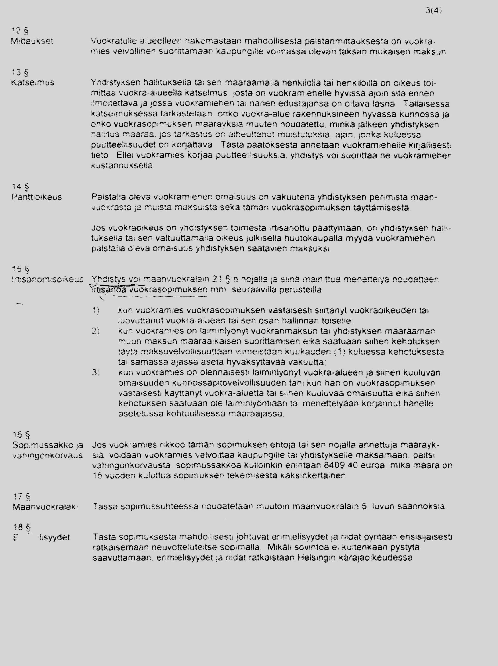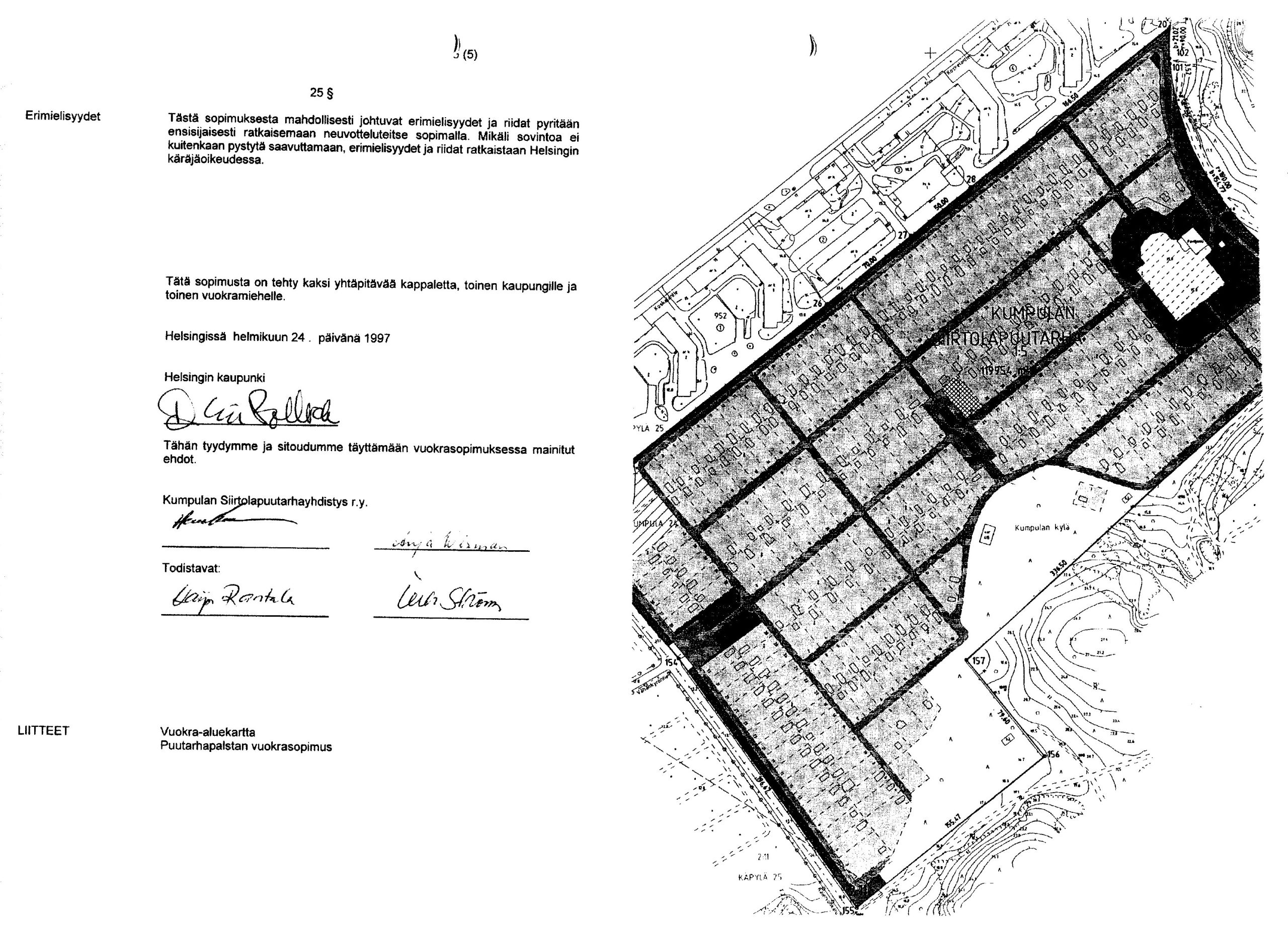 Kumpulan Siirtolapuutarhayhdistys ry:n vuokrasopimus Helsingin kaupungin kanssa 1996